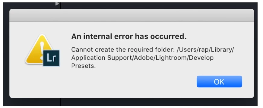 Lightroom Classic encountered user permission issues on Launch on Catalina
