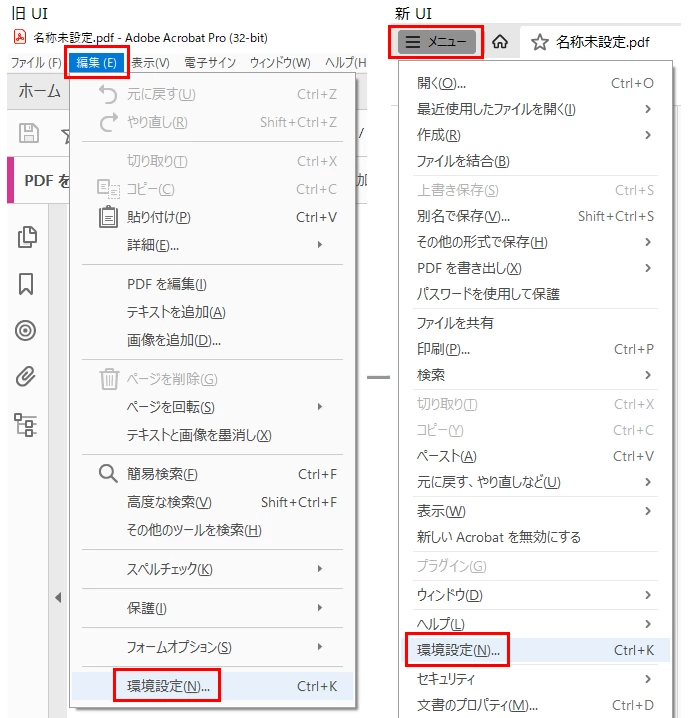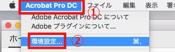 < MacOS の場合> [Acrobat Pro DC] > [環境設定] の順にクリック