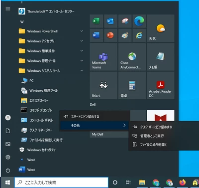 2. [コマンドプロンプト] を右クリック後、[その他] – [管理者として実行] をクリック