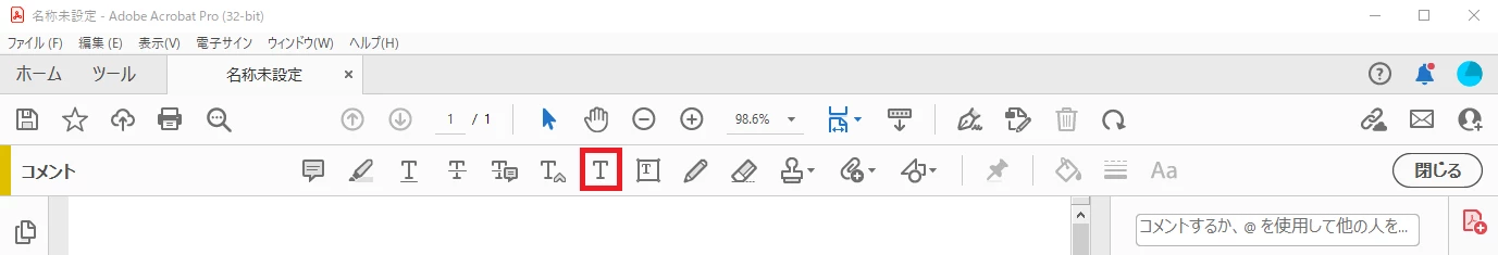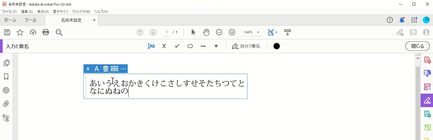 「入力と署名」 ツールを利用し、日本語をテキスト入力