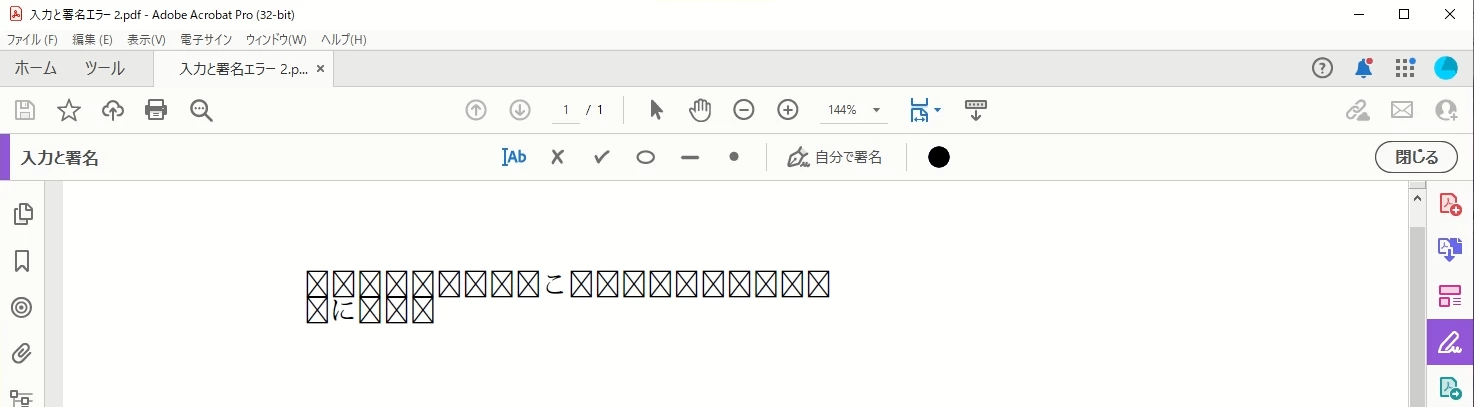 入力と署名を利用し、日本語のテキスト入力後に文字化けが発生する事象について | Acrobat
