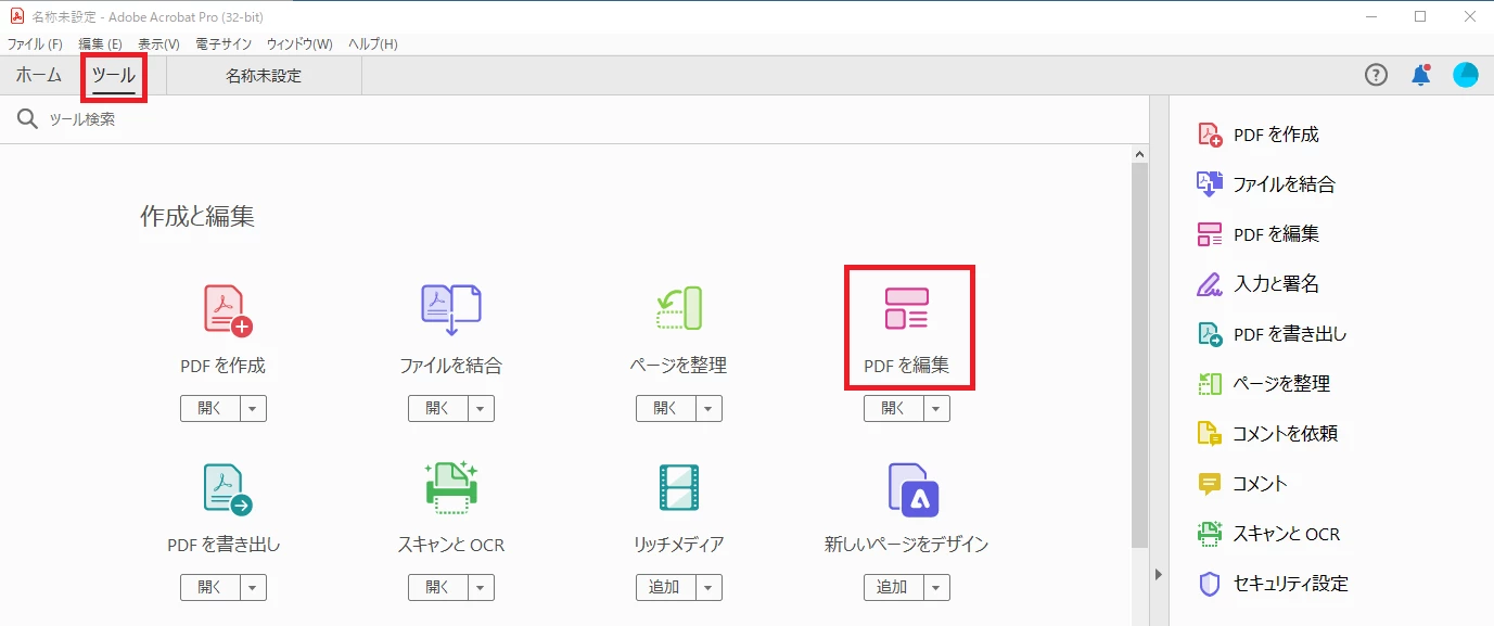 ・[ツール] – [PDF 編集] の順にクリック