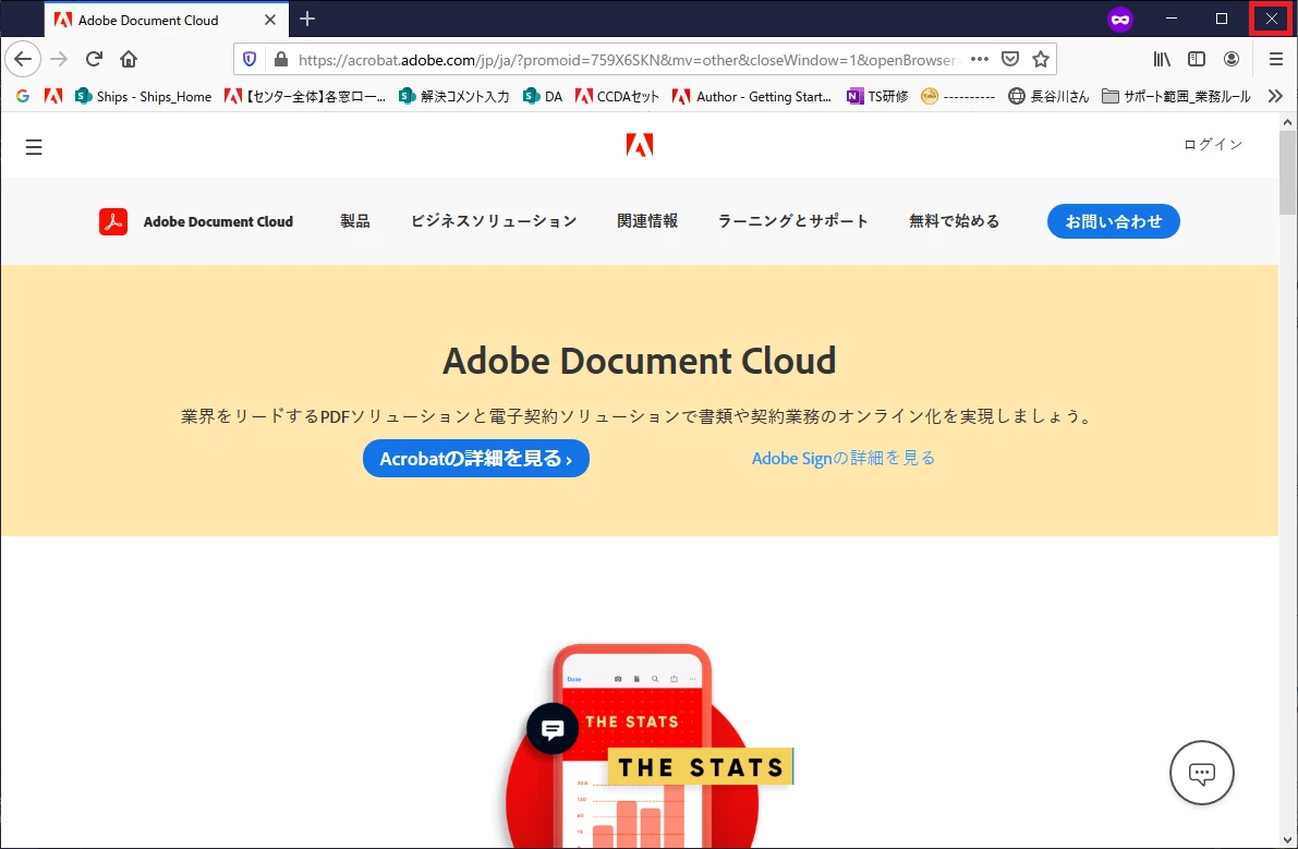 4. Document Cloud のウェブページが表示されるため、[×] ボタンをクリック