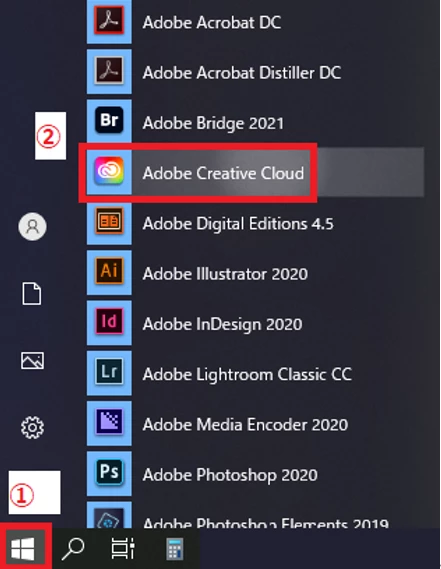 1. [スタート] メニュー > [Adobe Creative Cloud] の順にクリックし、Adobe Creative Cloudを起動する