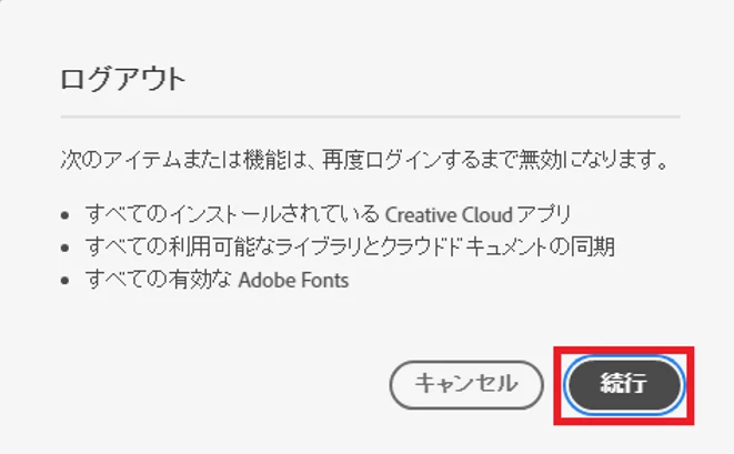 5. ログアウトしても問題ないかを確認するメッセージが表示されるので、[続行] をクリック