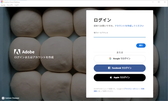 6. 再度ログイン画面が表示されるので、Adobe ID のメールアドレスを入力し、[続行] をクリック
