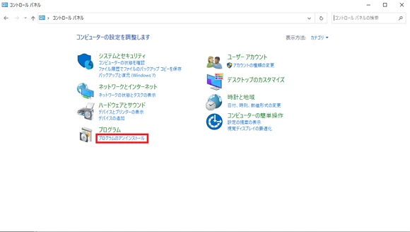 2. [プログラムのアンインストールまたは変更] をクリック