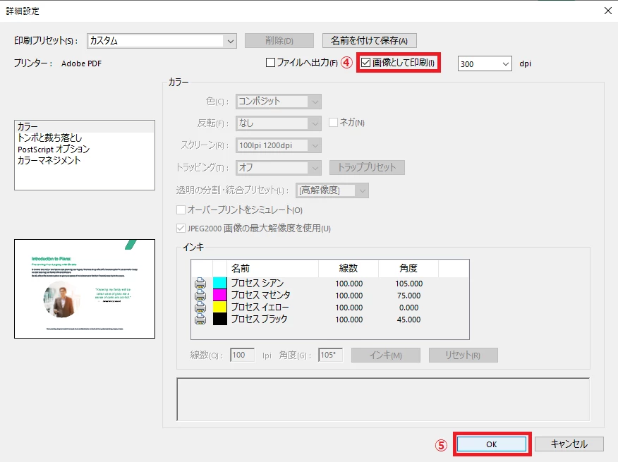 ④ "画像として印刷" のチェックをつける