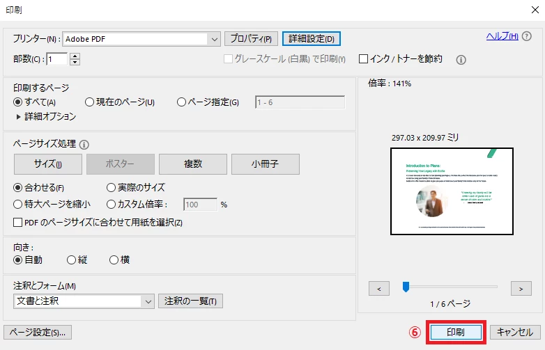 ⑥ [印刷] ボタンをクリック