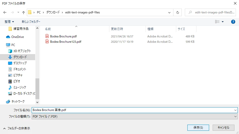5. ファイル名と保存場所を選択して、[保存] をクリック