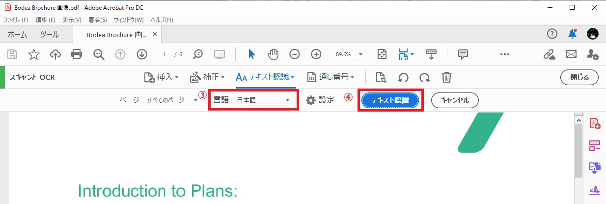 ② [テキスト認識] > [このファイル内] の順にクリック