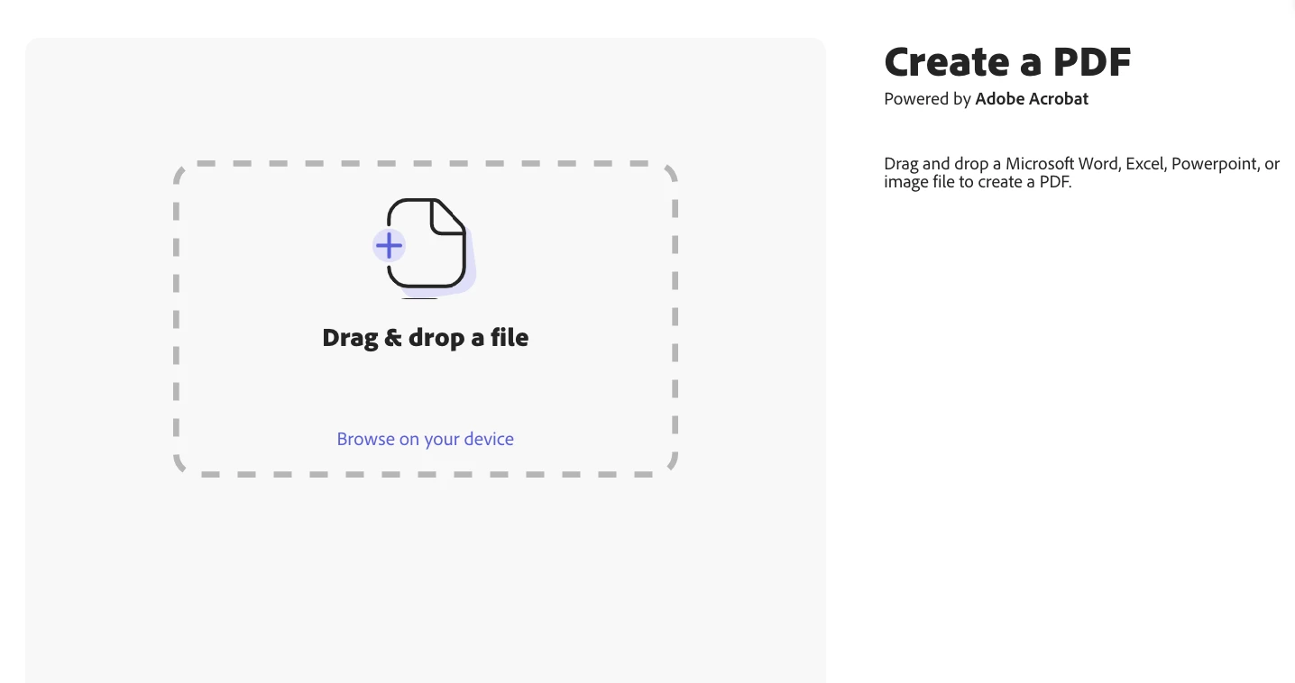 1. ホームページの、クイックアクションを試す > ドキュメントを編集の下にある「PDF を作成」を選択します。
