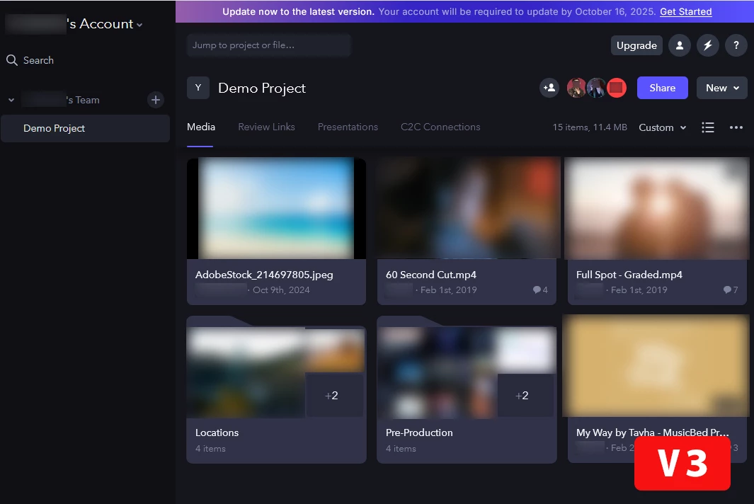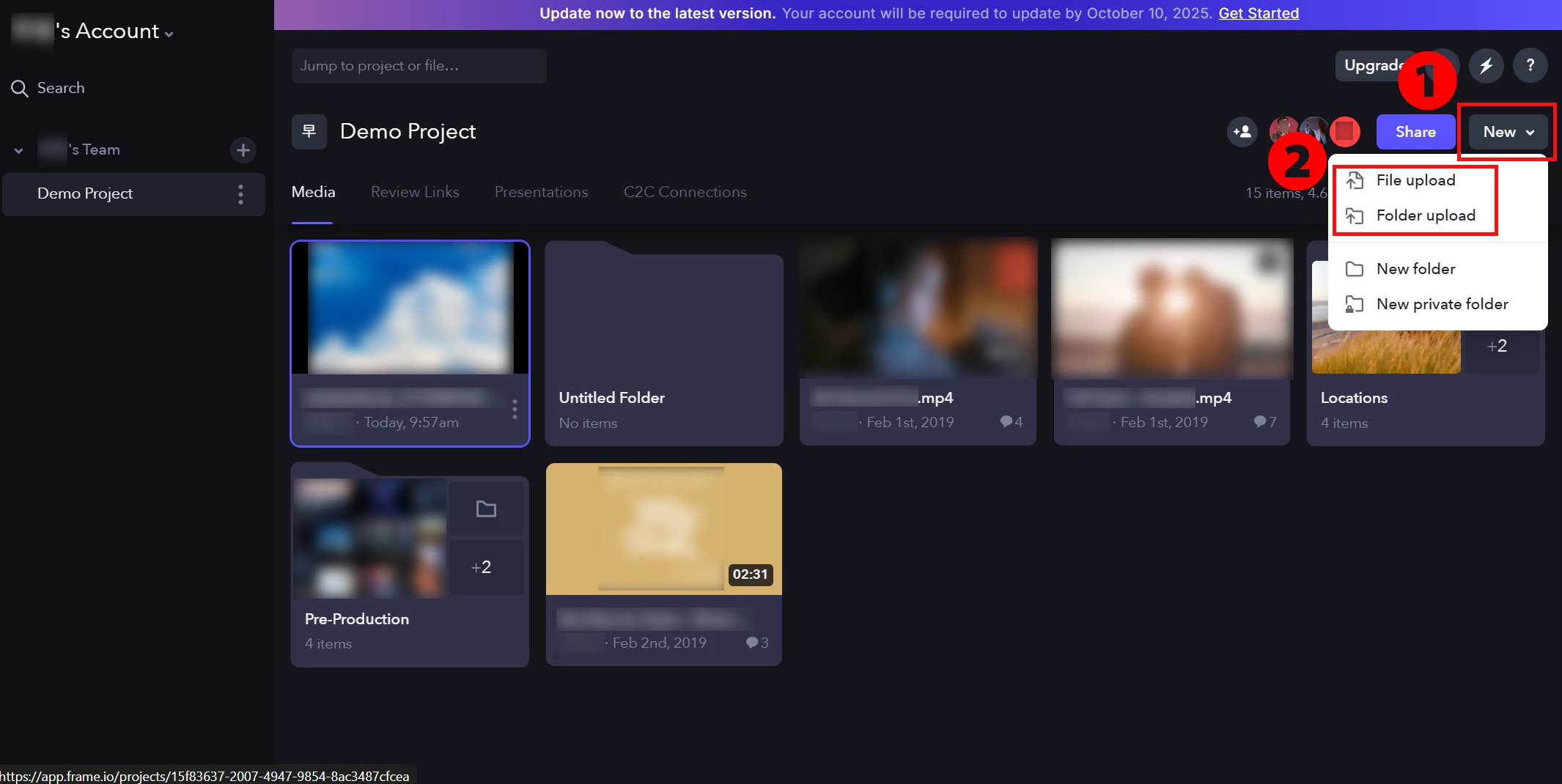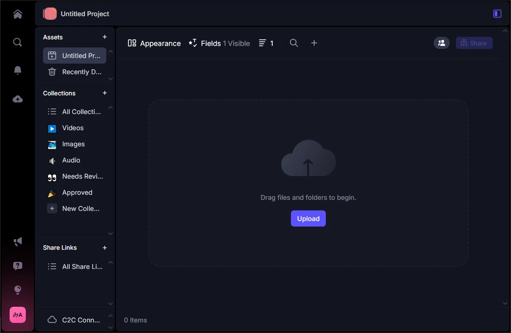 Frame.io上で専用クラウドストレージをご利用いただけます。