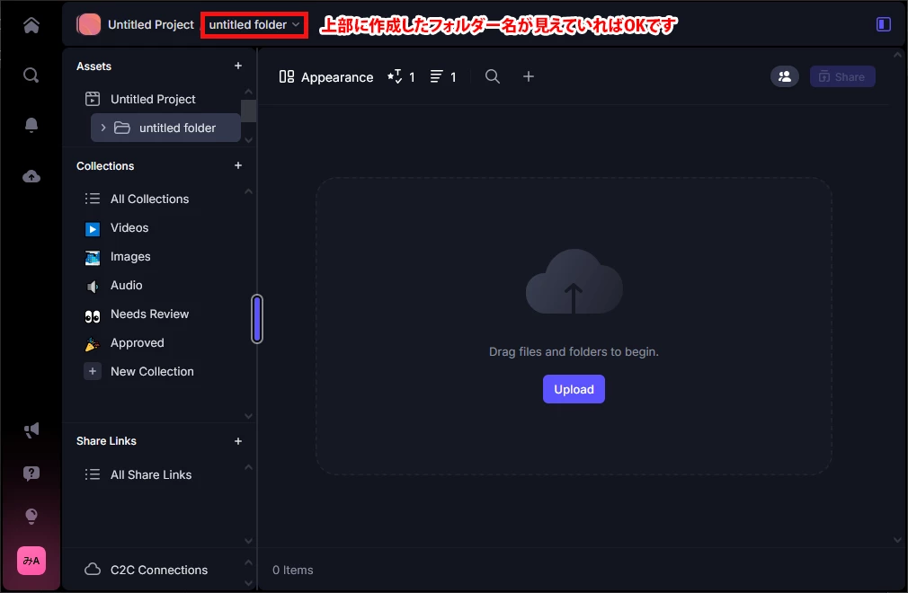 ※Upload Folderを選択した場合:PC上に作成したフォルダごとアップロードできます。
