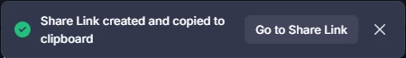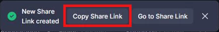 以下の「Share Link created and copied to clipboard」が表示されたら共有URLの発行完了です。クリップボードに自動的にコピーされますので手順10にすすみます。