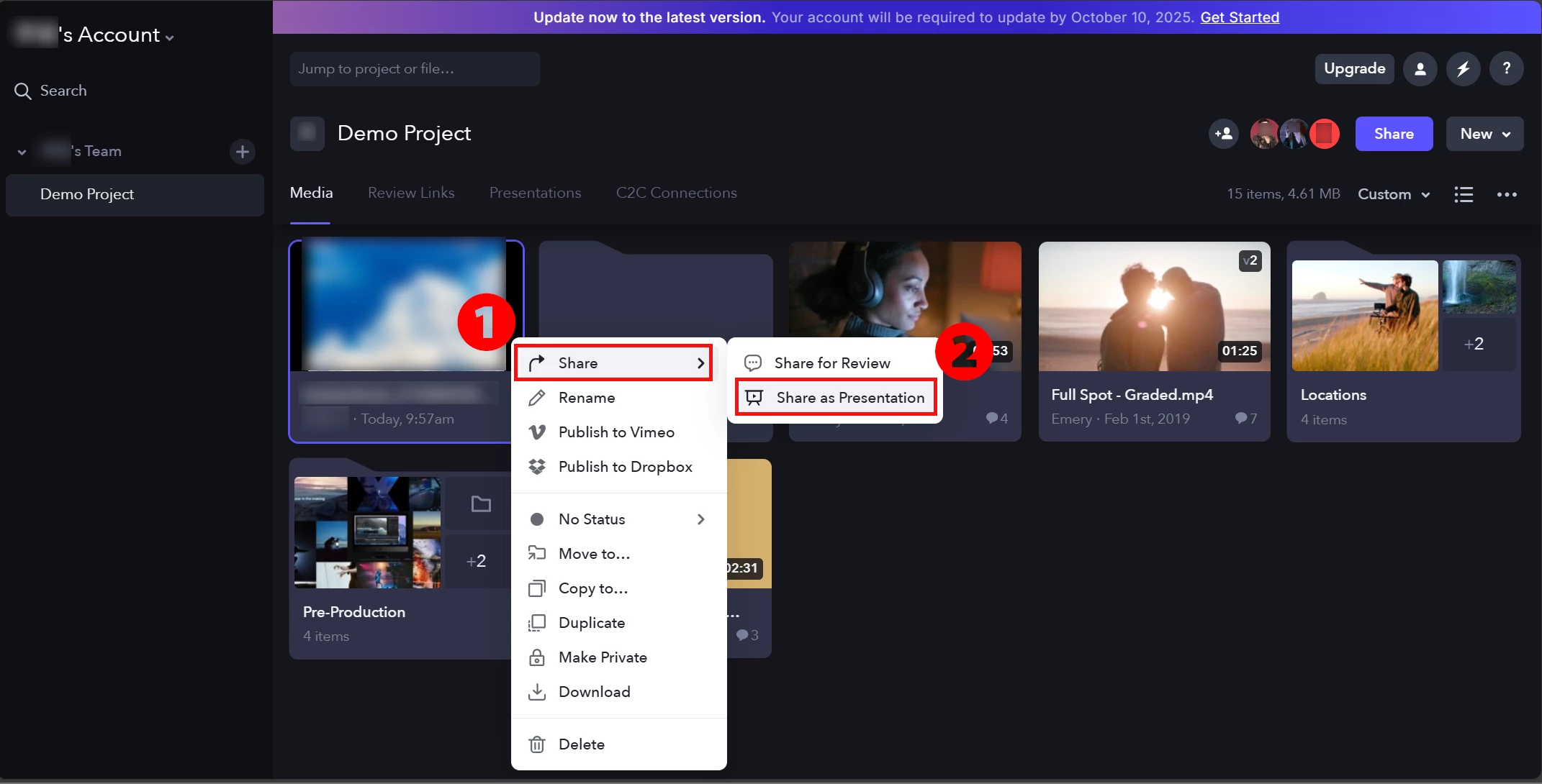 3. 「Share」>「Share as Presentation」を選択します。