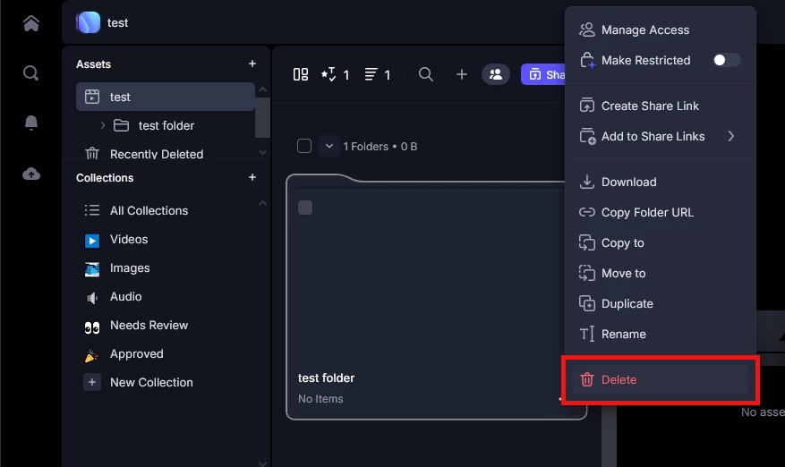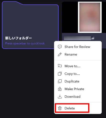 frame.io上で管理が不要になったデータは削除することが可能です。