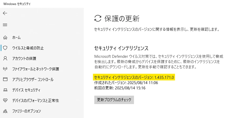 Windowsのセキュリティ インテリジェンスのバージョンを「1.435.146.0」以降に更新いただくことで問題が解消したとの報告を受け取っております。