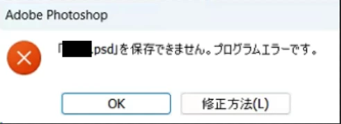 2024年7月末に配信されたPhotoshop 2024(25.11)アップデート後から、一部のWindows環境において「プログラムエラー」が表示されPSD保存が出来ない問題が報告されております。