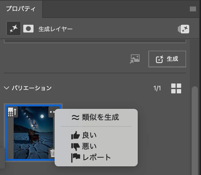 お試しになりご感想やご質問をこちらにお寄せください。生成後のプロパティパネルのサムネイルからも下図のように評価をいただけると幸いです。