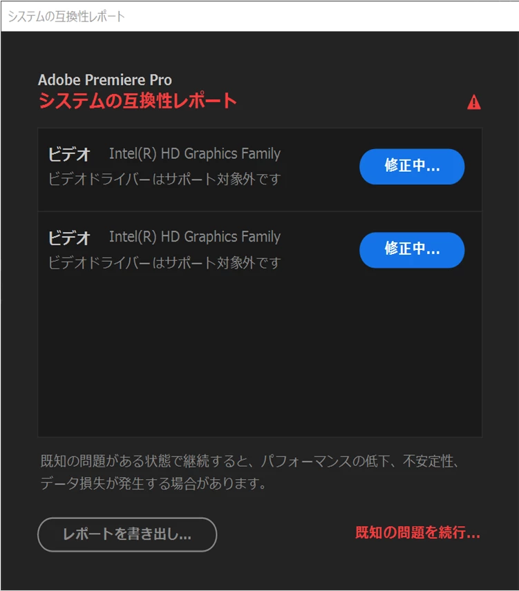 「ビデオドライバーはサポート対象外です」とシステムの互換性レポートが表示される場合の対処方法 | Premiere Pro