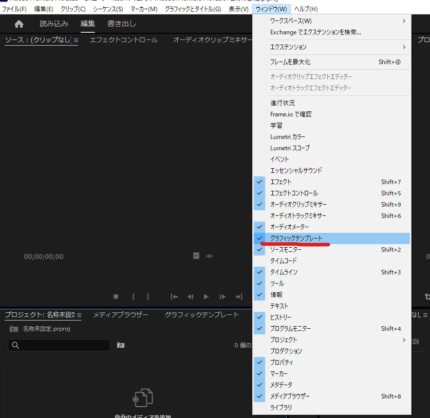 ▶Premiere Pro のエッセンシャルグラフィックスパネル