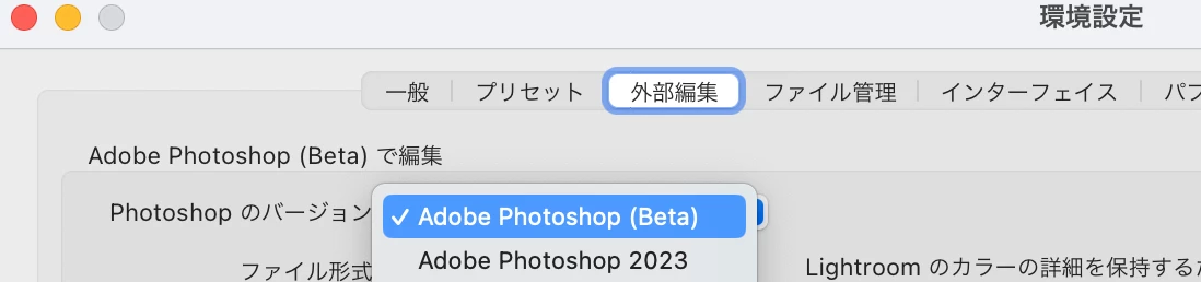 LightroomからControl+Eで起動すると、Beta版が起動してしまう。