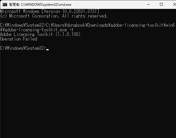 一度、Creative Cloudのアプリをアンインストールし再度インストールしてみたものの、同じメッセージが表示されます。