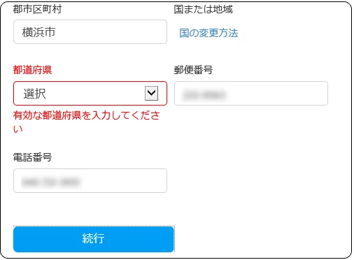 オンラインで購入するとき都道府県が選択できない