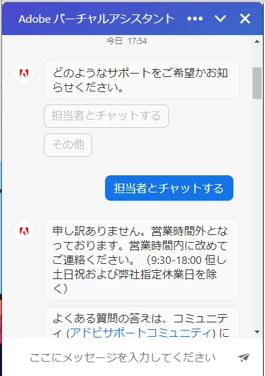 チャットサポートに平日営業時間中に問い合わせても時間外と表示される