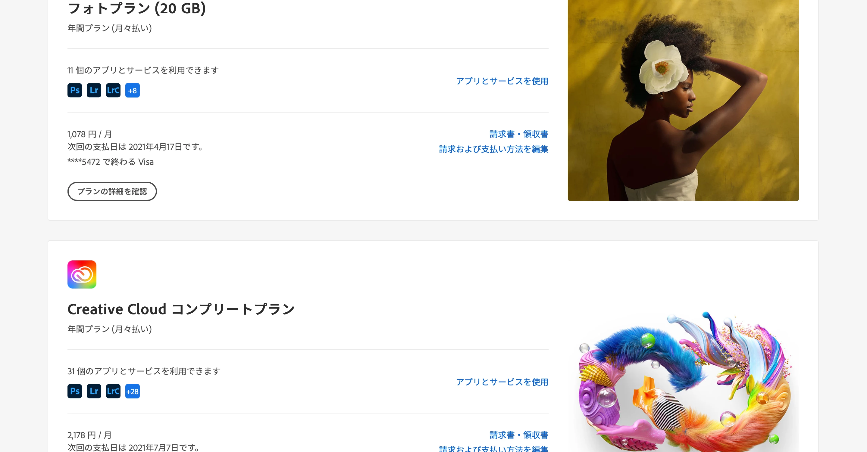 フォトプランとコンプリートプランが重複し支払いが来ている