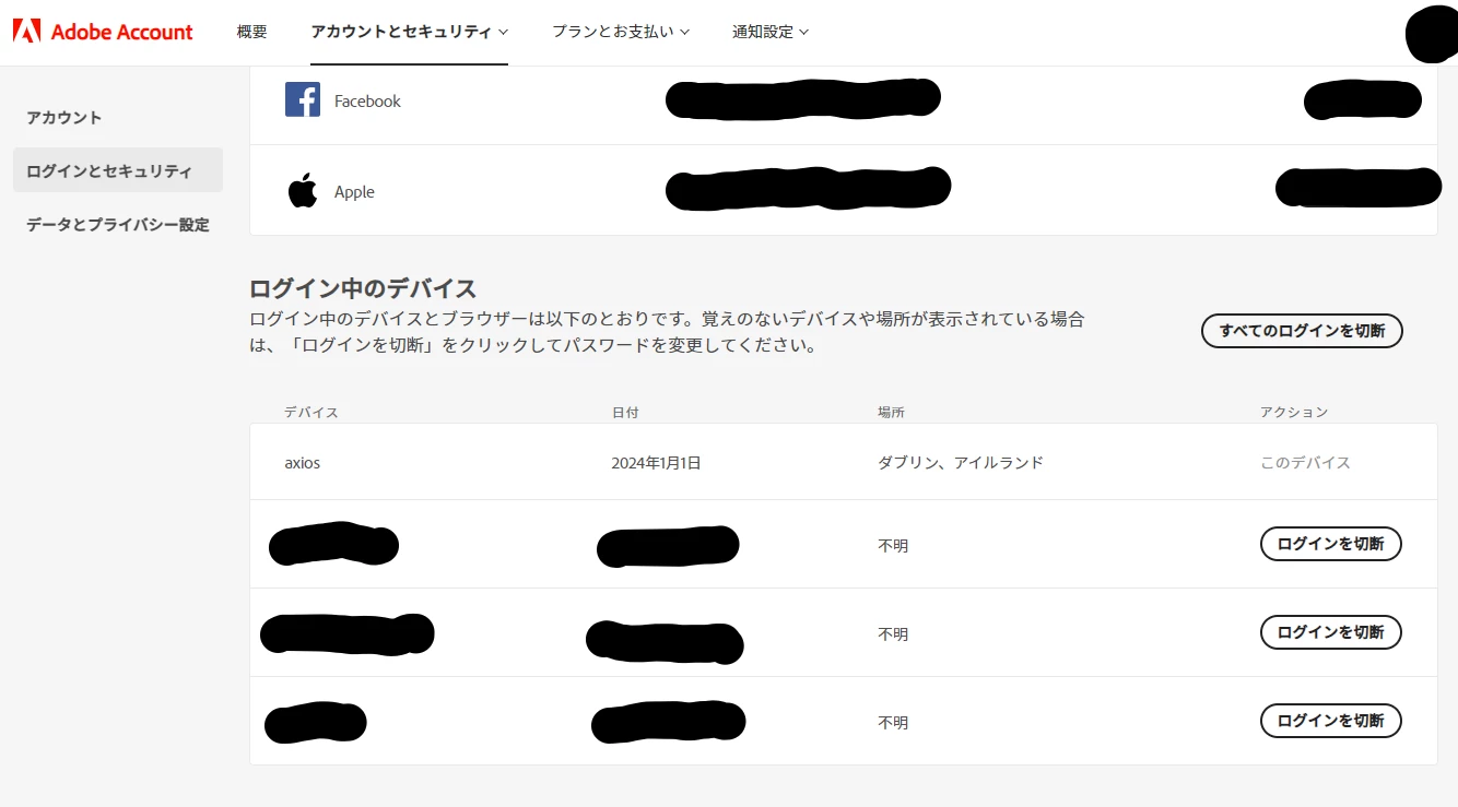 「ログイン中のデバイス」に知らないデバイスが接続されていた形跡あり
