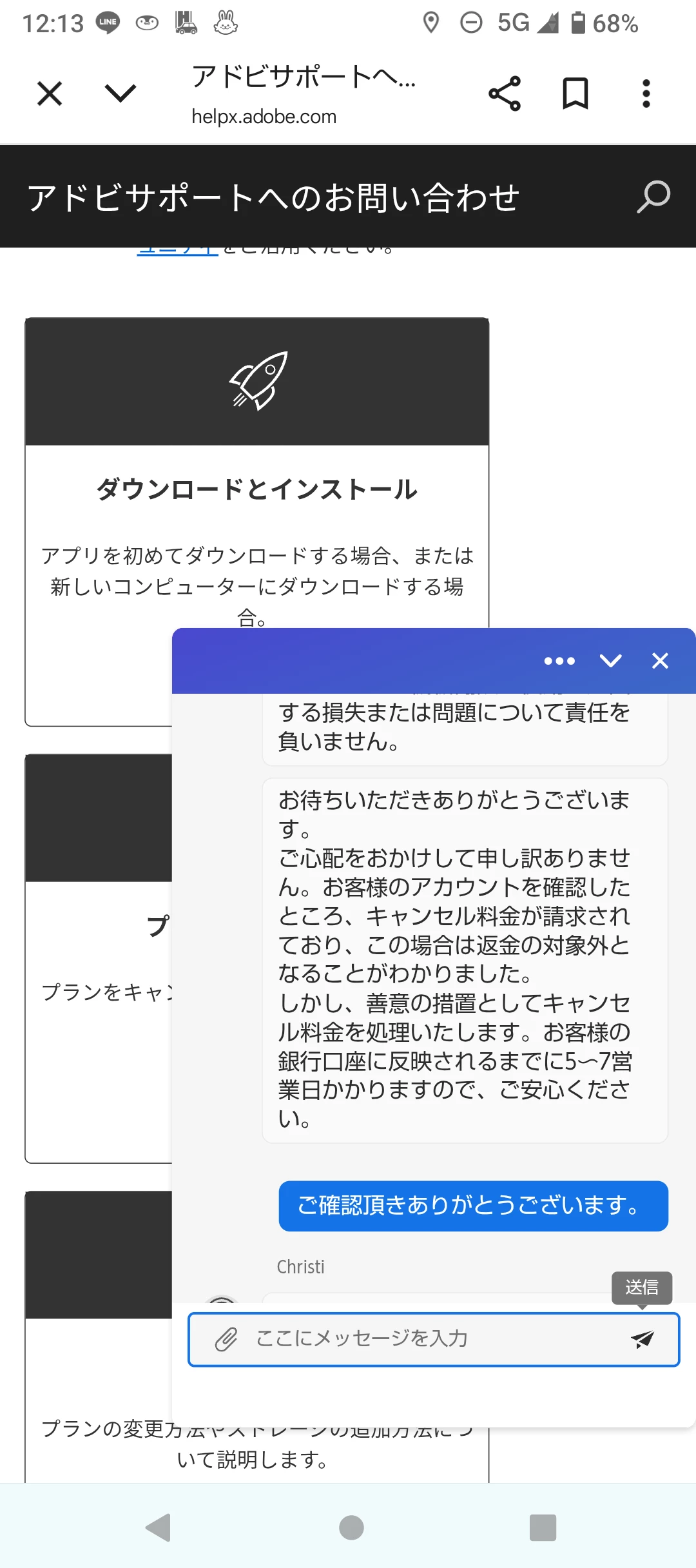 本日、Adobeサポートに問い合わせした結果、返金していただける運びとなりました。