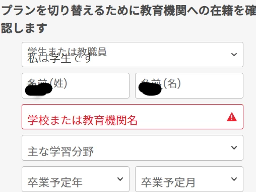 【学生プランへの切り替え】