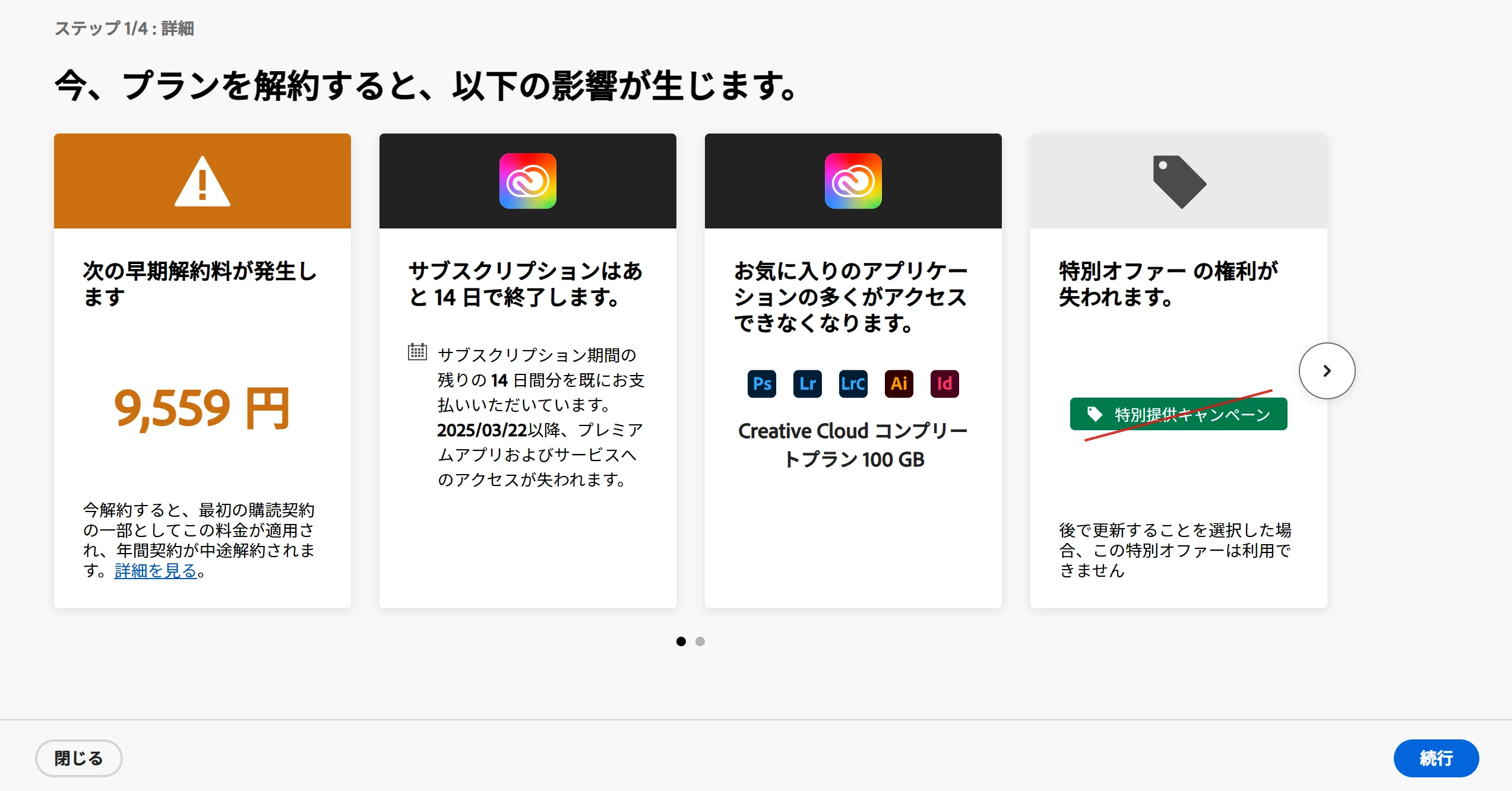 サブスクリプション及び解約条件における返金は14日以内になっています。