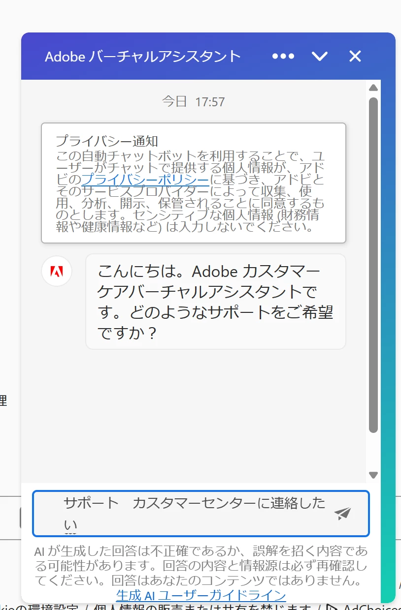 先月Adobe creative cloudのコンプリートプランの注文が重複してしまった事についてカスタマーサポートに電話したのですが「cloudcloudのかたは1をお選び下さいその他は..何番....」みたいなのが続いてこれの繰り返しでよく分かりません。どこに連絡すれば契約を取消せるでしょうか