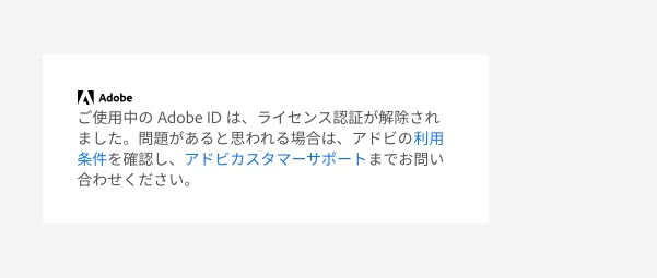 Creative CloudからStock→アカウント管理→プラン→プランを管理→プランを解約→「ご利用いただきありがとうございます」と「Googleでログイン」というログイン画面が出てくるので、「Googleでログイン」ボタンを押す→ご使用中の Adobe ID は、ライセンス認証が解除されました。問題があると思われる場合は、アドビの利用条件を確認し、アドビカスタマーサポートまでお問い合わせください。と、出てきます。