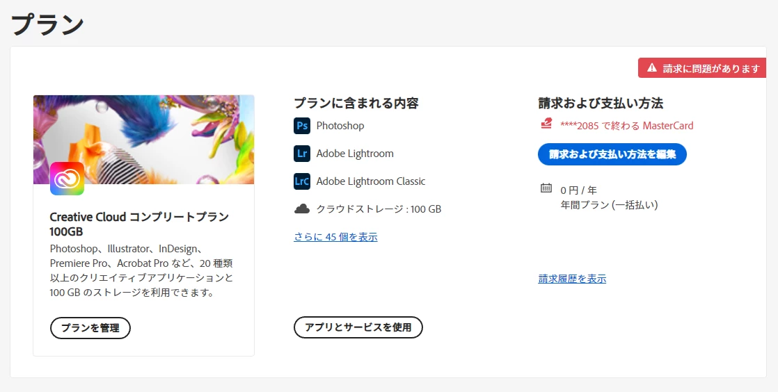 去年、専門学校にて使用するために年間プランをプリペイドカードで一括で支払い、使用していたのですが、先週からAdobeのソフトが使えなくなり、確認したところなぜか更新料が0円になっていました。