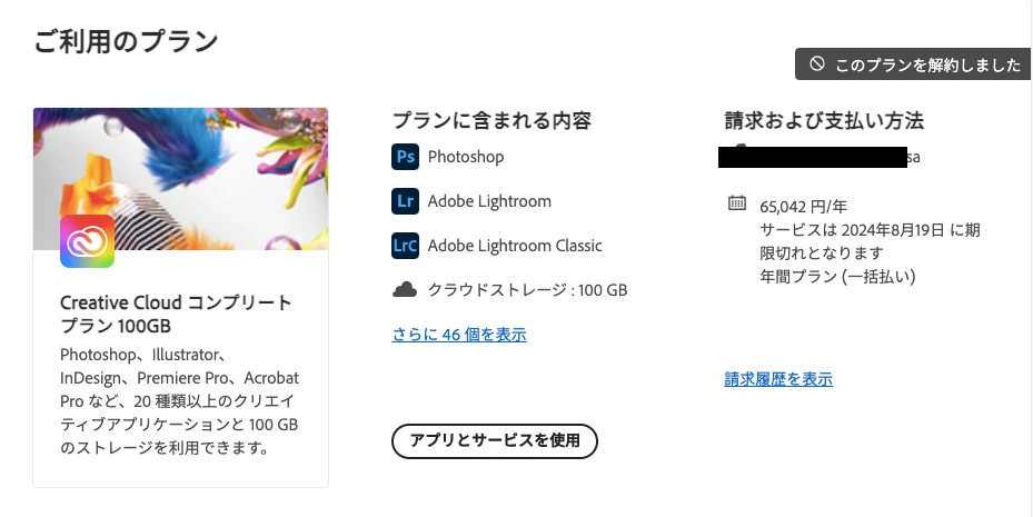 Creative Cloud コンプリートプランを年間契約していました。