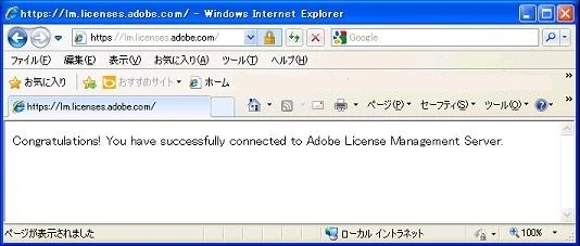 「Congratulations! You have successfully connected to Adobe License Management Server.」