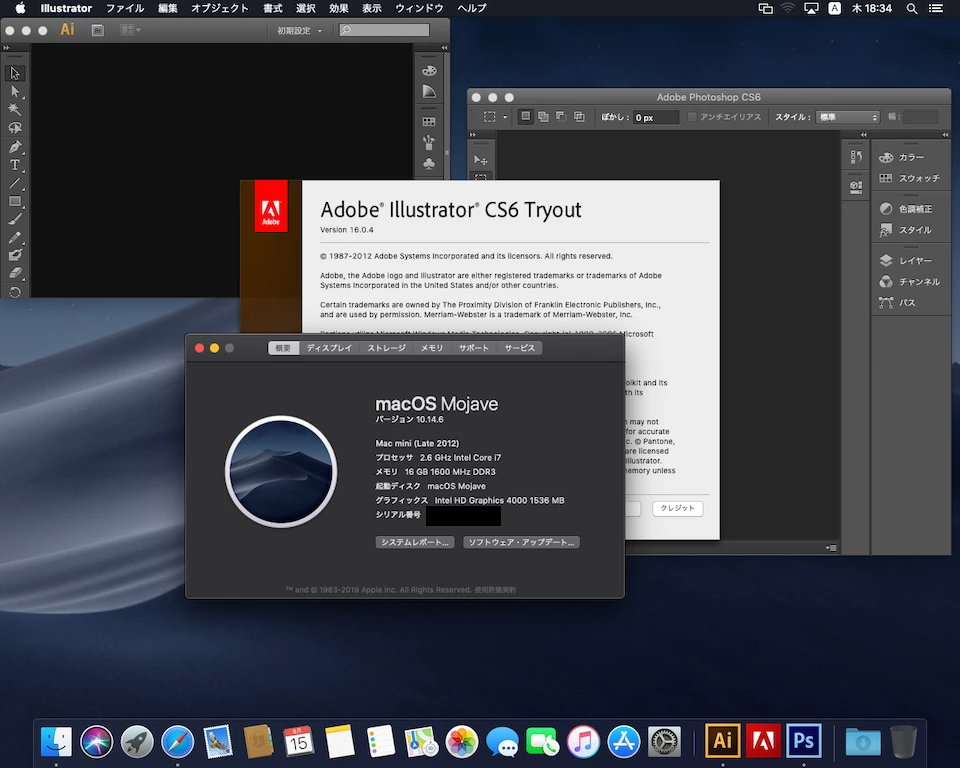 macOS mojaveに永久ライセンス取得済みのphotoshopCS6、illustratorCS6をダウンロードしたい!