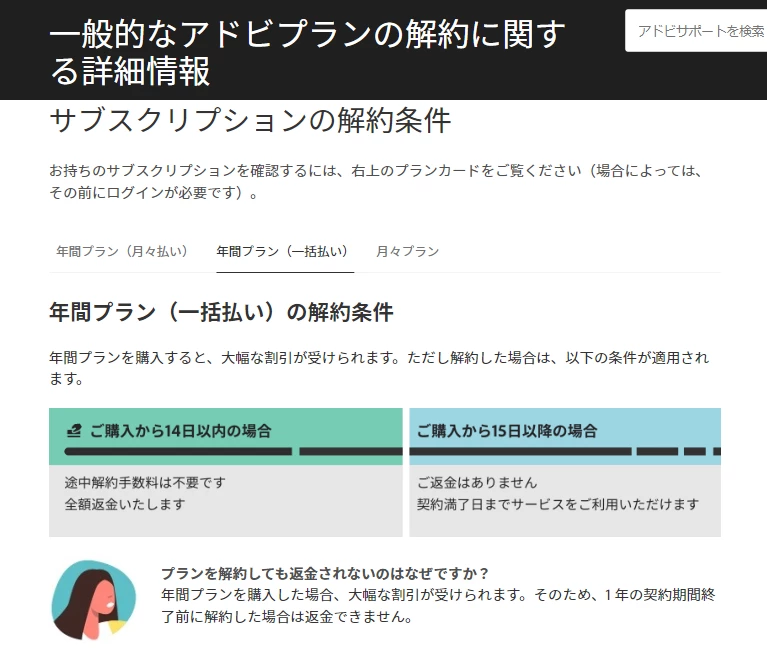 photoshop年間プラン(一括払い)を昨年2022/11/7に契約し、1年限りの使用を考えていたため、2023/11/7までに解約予定でした。