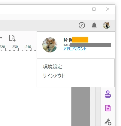 過去に別のアカウントでアクロバットを使用していたのですが、そのアカウントはサインアウトし、新たなアカウントでアクロバットを使用しています。 アクロバット使用時やPDF開封時に右上にアカウント名が表示されますが、過去使用していたアカウントのままの表示となっており、新しいアカウント名に切り替えたいと思います。その方法をご教示頂けないでしょうか。よろしくお願いいたします。