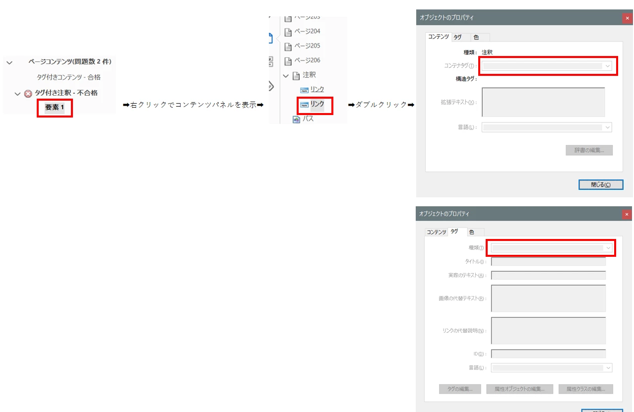 アクセシビリティチェックの「タグ付き注釈」の不合格について