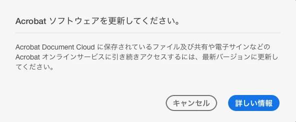 本日Acrobatが「Acrobatソフトウェアを更新してください。」ダイアログを出しました。