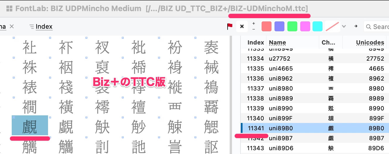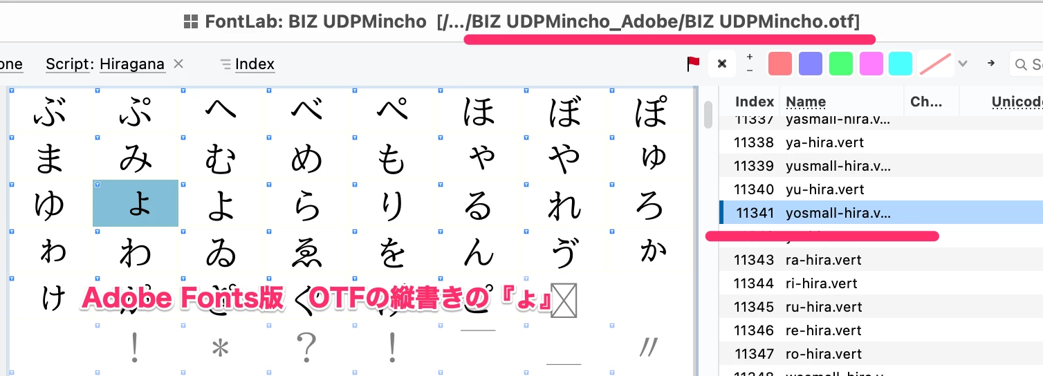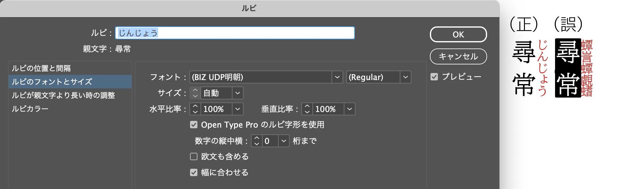 インデザインのルビ設定にてBIZ UDP 明朝 R or M を使うと文字化けが発生