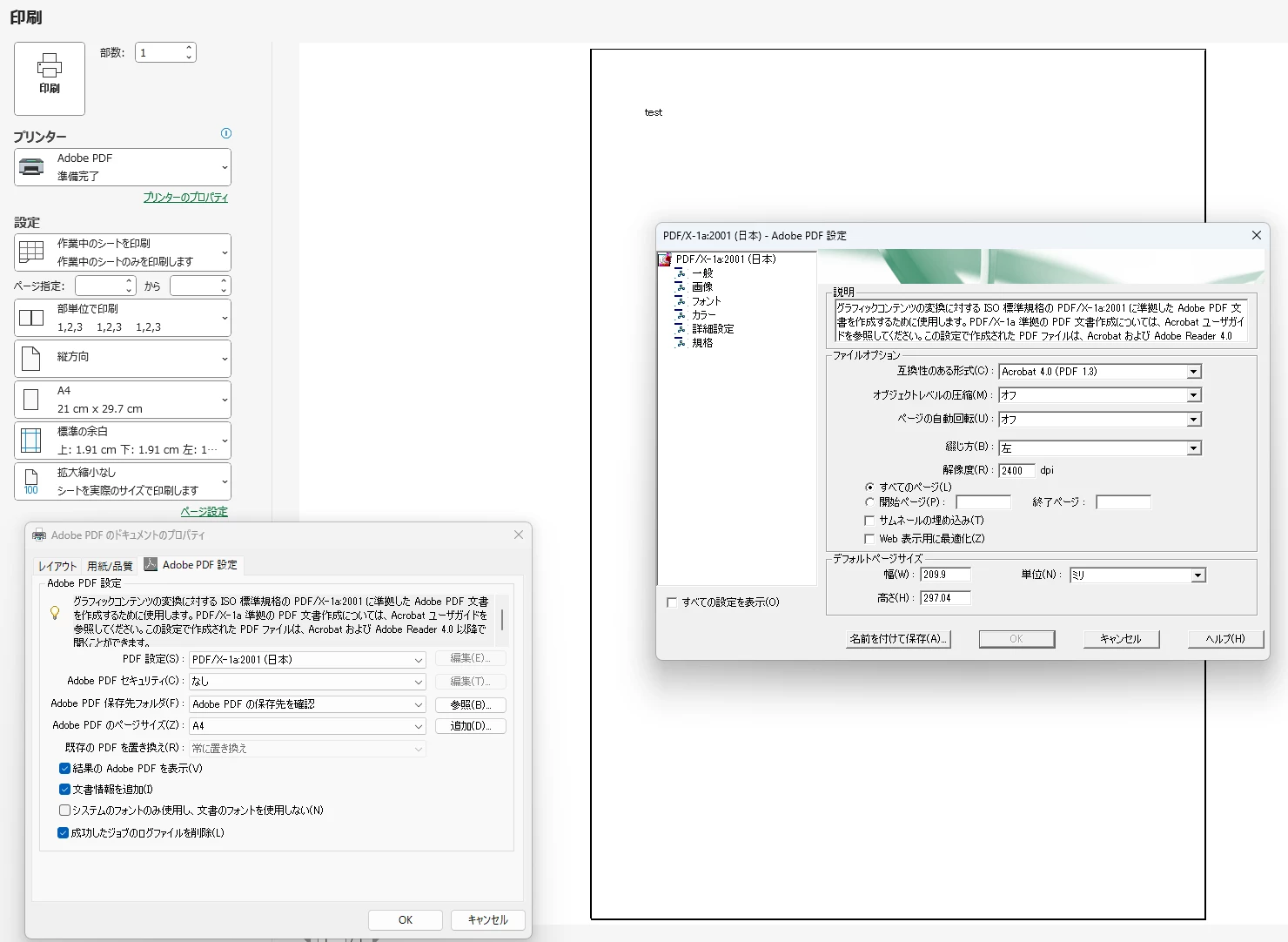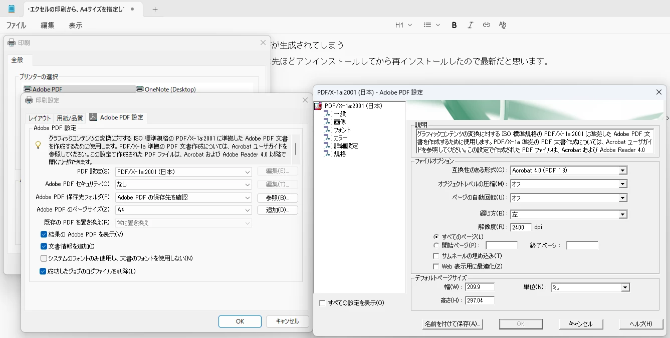 エクセルの印刷から、A4サイズを指定しているのに215.9x279.4mmのPDFが生成されてしまう