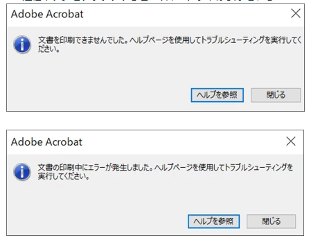 ネットワークが切断された状態でPCからダイレクトFAXをした際に、「文書を印刷できませんでした。ヘルプページを使用してトラブルシューティングを実行してください。」や「文書の印刷にエラーが発生しました。ヘルプページを使用してトラブルシューティングを実行してください。」というメッセージが表示される端末とされない端末がございました。