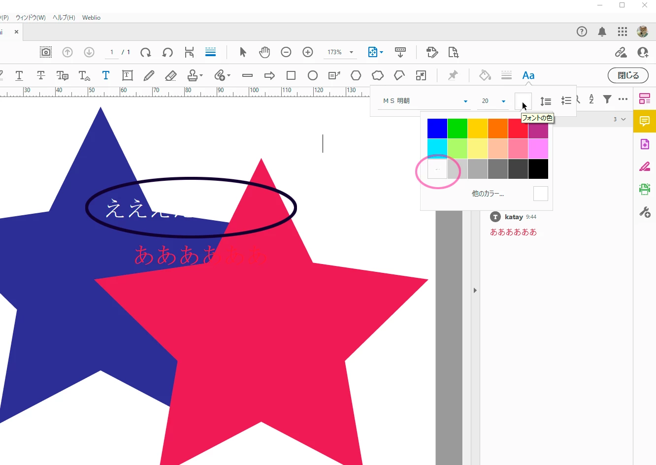 コメントの中の「T」(テキスト)を入力した後、別の場所をクリックするとテキストはあるけれど、透明になって見えなくなってしまう。