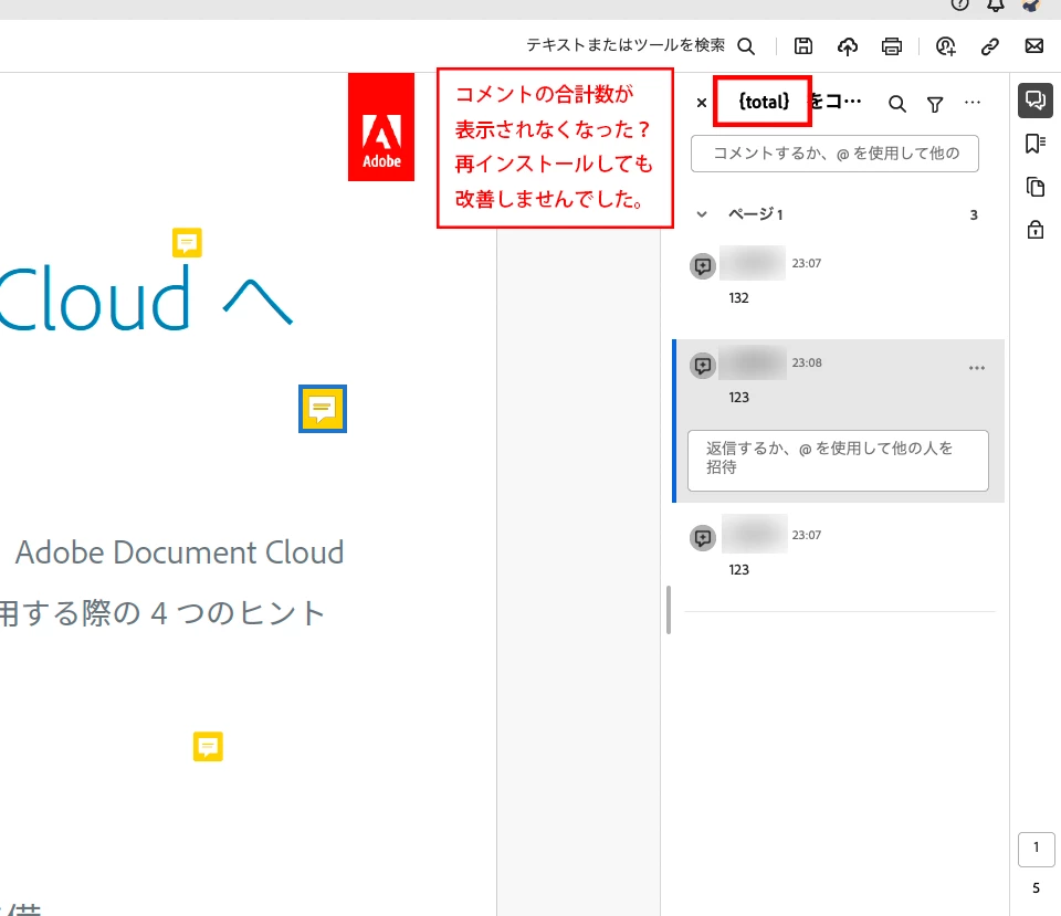 コメントのレビューに、コメント総数が表示されない?(2024年4月28日)